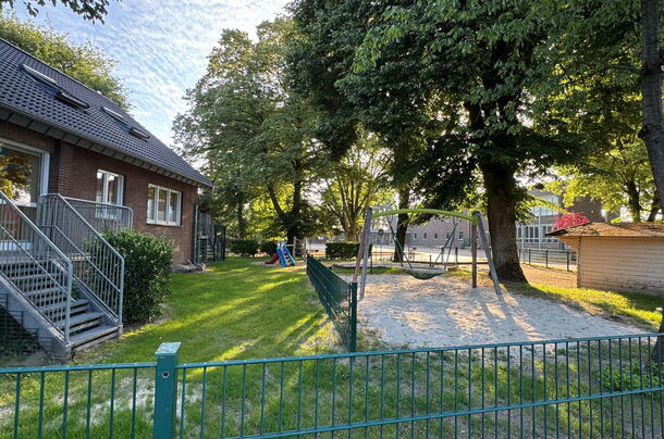 Unsere Großtagespflegestelle befindet sich in einem großen Einfamilienhaus. Der helle und freundliche Gruppenraum bietet Platz für unseren großen Esstisch, an dem wir gemeinsam unsere Mahlzeiten einnehmen und einen großen Spielbereich mit Spielküche, Bauteppich und allem, was das Herz begehrt. Wir haben aber auch Rückzugsmöglichkeiten geschaffen, die [nbsp]zum Lesen, Verweilen und Beobachten einladen.