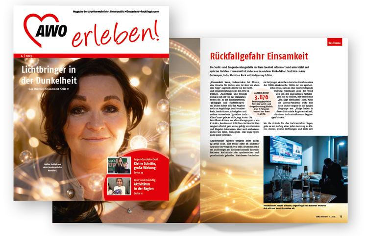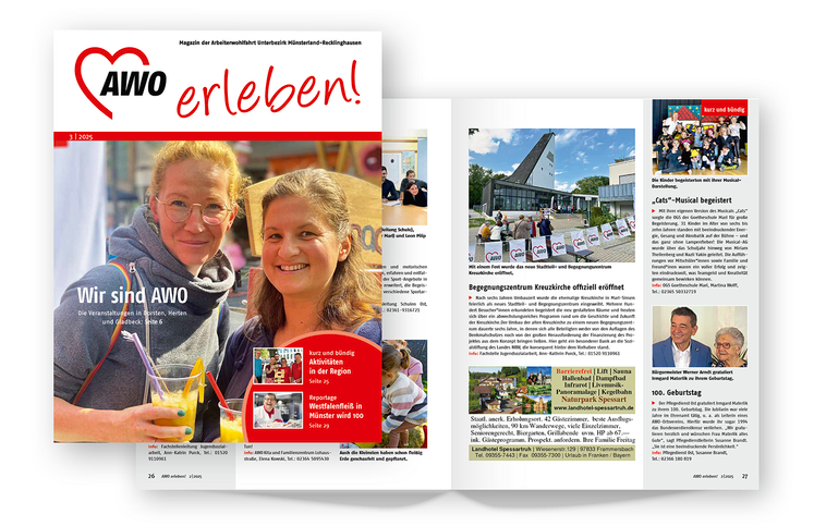 AWO erleben! ist das Magazin des Arbeiterwohlfahrt Unterbezirks Münsterland-Recklinghausen. Mitglieder der AWO erhalten das Magazin per Post. Wer sich die aktuelle Ausgabe online anschauen möchte, findet hier die Web-Version.